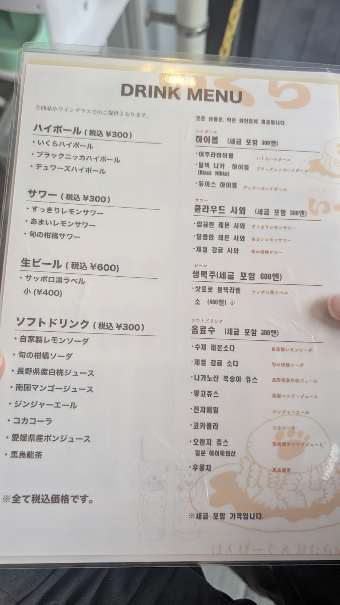 Typical highlights include dishes like okonomiyaki, savory grilled options such as hamburger omelette with demi-glaze, and the uniquely satisfying ikura (salmon roe) fried rice. For those seeking lighter tastes or something a bit different, there are refreshing sours and highballs that complement the savory fare, suitable for unwinding after a long day.